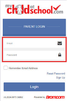 - Once on the Login page, there will be the option to enter your email address (which acts as your username) and a auto generated password which would be part of the welcome package (which you can change once you have successfully logged in). If you are unsure of your password, you can click on the Reset Password. Once signed in, you will be navigated to your child’s profile page.